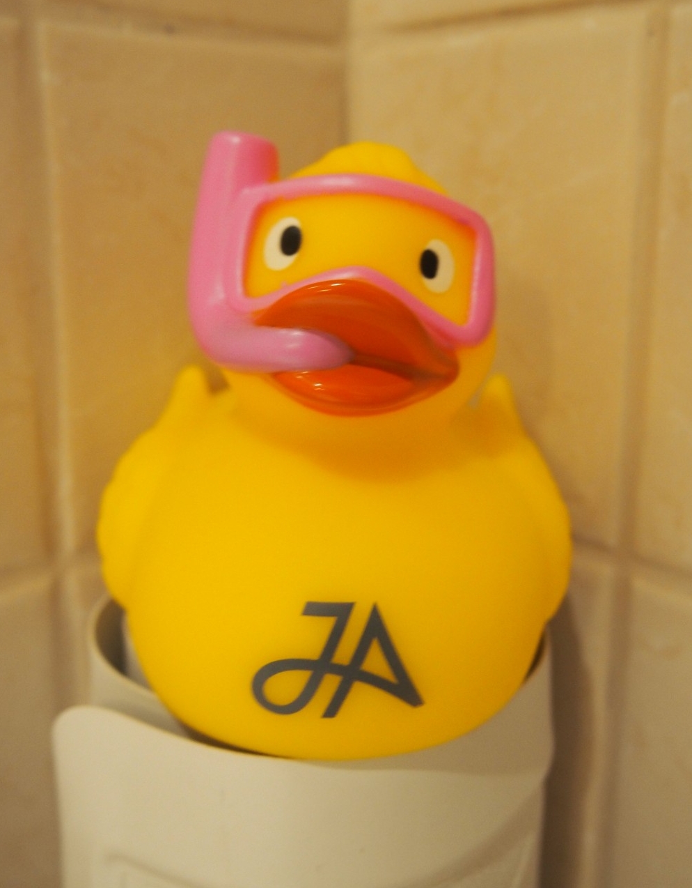 Perustasoisessa kylpyhuoneessa on yhdistetty suihku-/kylpy, bidé sekä Elemis-kylpytuotteita ja hauskana lisänä JA:n oma sulkelteleva kylpyankka, joka oli lähtöpäivää edeltävänä iltana loikannut vuoteellemme kirjeen kera toivottamaan hyvää kotimatkaa.