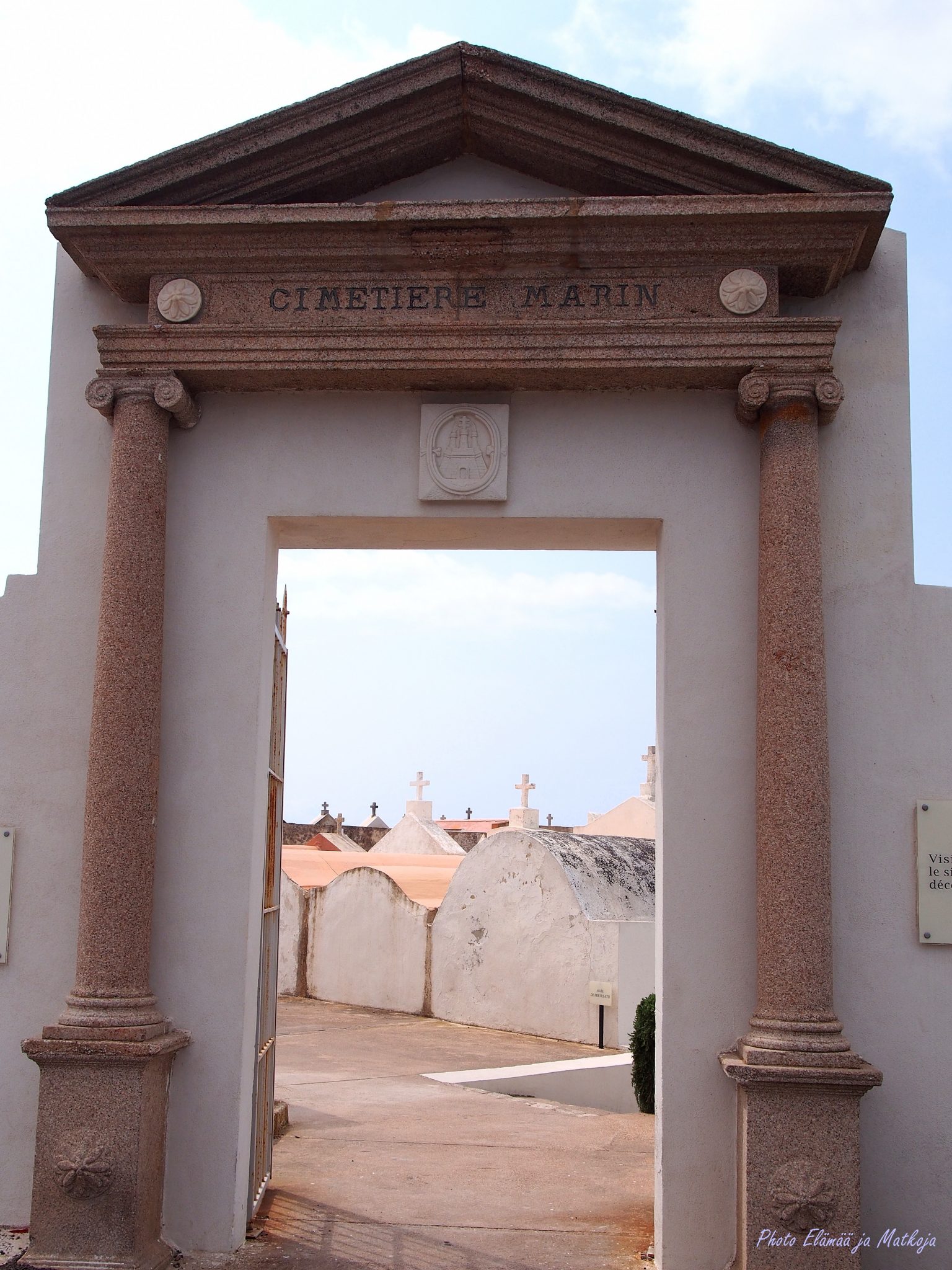 Ja kaunis tämä todellakin on. Holvien valokuvat ja muistoesineet kertovat perheiden tarinaa, tuoreet kukkaset kaipauksesta. Cimetière Marin ’kadunnimineen’ on kuin oma hiljainen kaupunginosansa, jossa ihmisten persoona on yhä läsnä. Tänne meren ylle, on ihmisen hyvä päättää maallinen matkansa.